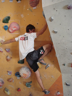 Por mi parte, nada contento con mi performance. Salí descentrado. En realidad estuve un tanto descentrado las dos semanas anteriores, desde la compe de WC en Barcelona. Muchas cosas en la cabeza y pocos momentos de entreno, con poca organización. Pero esto forma parte del proceso de aprendizaje, y todavía queda temporada, pocas compes pero mucho por progresar de cara al año que viene.En realidad fue una eliminatoria un tanto extraña, ya que algunos de los habituales en las finales tampoco pasaron de ronda, con unos bloques muy duros (para esta cuartos de final). Aunque así es la compe, nunca sabes si para pasar necesitas hacer todos los bloques o con uno basta para pasar de ronda. El resto del equipo tampoco logró pasar, siendo Nacho el más cercano (estuvo todo el día dentro hasta que el último competidor lo relegó en los puestos de clasificaciónn). Tampoco Bruno ni Edu, aunque Edu lo hizo muy bien en el primer bloque técnico.